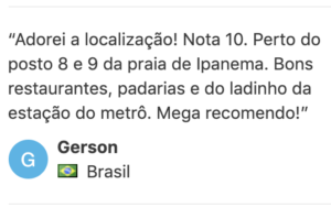 Localização maravilhosa, próximo a bares, restaurantes, praia, metrô, Copacabana. Prédio com portaria 24h em uma rua sem saída, muito calma.Tem uma mini geladeira e ar condicionado no quarto. Melhor custo benefício. Juliana – Crítico de viagem – Booking.com